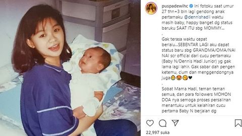 "Ini aku lagi gendong anak pertamaku," kata Puspa.